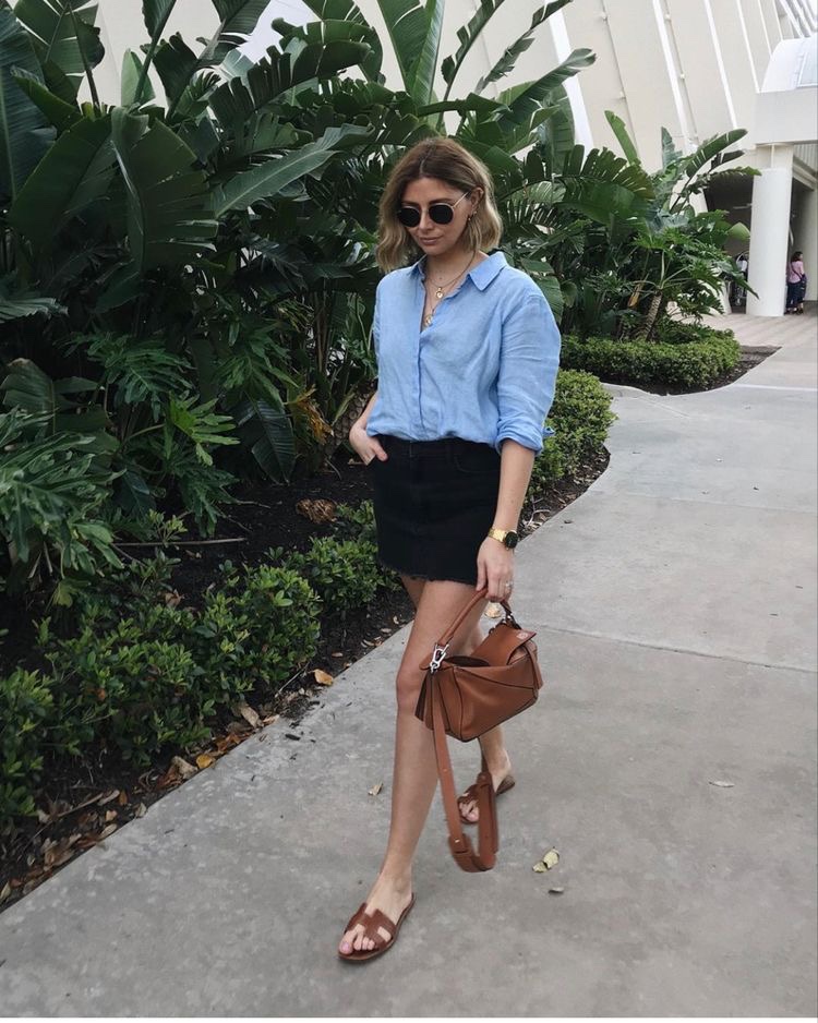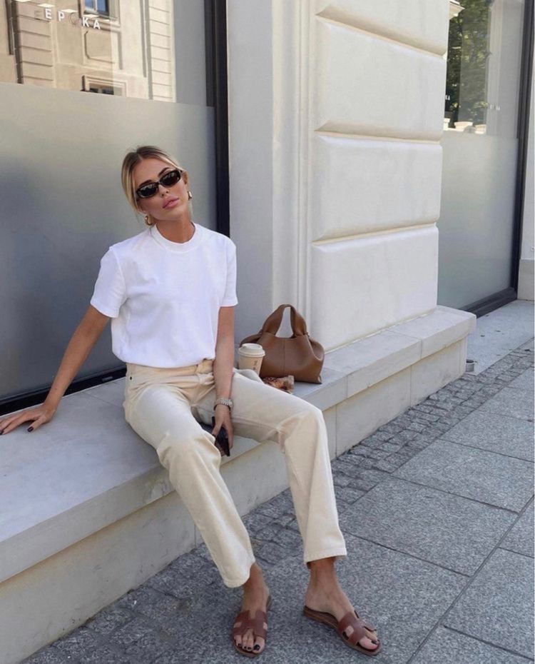 군더더기 없이 깔끔한 코디에 신발과 가방으로 포인트를 주는 것만으로도 너무 멋진 룩을 완성할 수 있습니다.